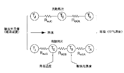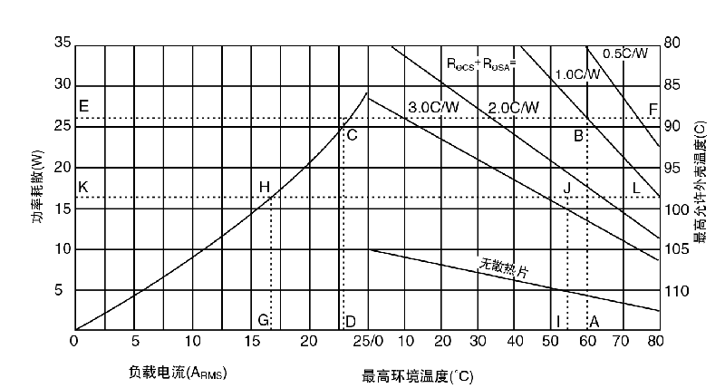 RΘJC = 結(jié)點(diǎn)到外殼的熱阻, °C/W RΘCS = 外殼到散熱片的熱阻, °C/W RΘSA = 散熱片到環(huán)境的熱阻, °C/W