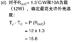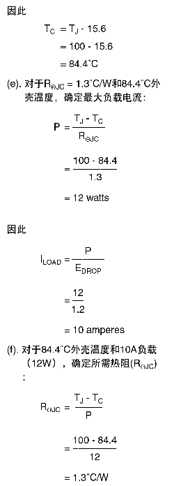 參數(shù)關(guān)系相似,可以找出最高允許外 殼溫度、最大負(fù)載電流和要求的結(jié)點(diǎn) 到外殼熱阻(RΘJC)的解法。同樣,當(dāng) 已知這些參數(shù)中的兩個(gè)時(shí),可以解出 第三個(gè),如下面示例中所示(使用前 面的值):